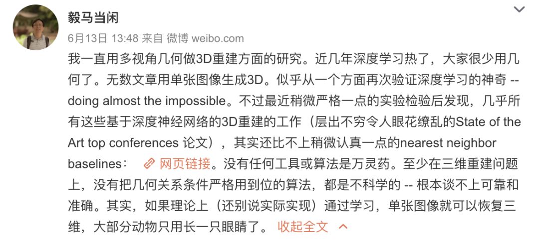 几乎所有这些基于深度神经网络的3D重建的工作(层出不穷令人眼花缭乱的State of the Art top conferences 论文),其实还比不上稍微认真一点的nearest neighbor baselines。没有任何工具或算法是万灵药。