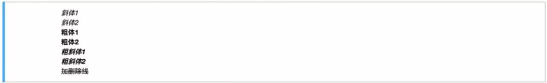 一些常用的表示文本强调的特殊文本格式如加粗、斜体、删除线等可以分别通过在需要强调的文字两端加不同数量的【*】、【_】和【~】来实现。