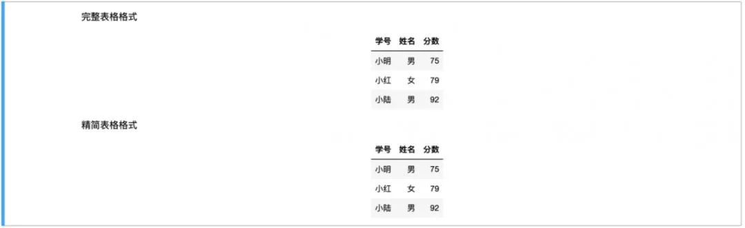 插入表格时,用【|】表示单元格边界,在表格标题行下方插入一行同样列数的【-】,每个单元格中的【-】数量可以为任意个。Notebook中表格会自动对齐,有良好的格式。同时,为了精简表格的样式,可以省略每行首尾单元格靠表格边框的【|】。与插入代码块一样,插入表格前至少需要一个空行。