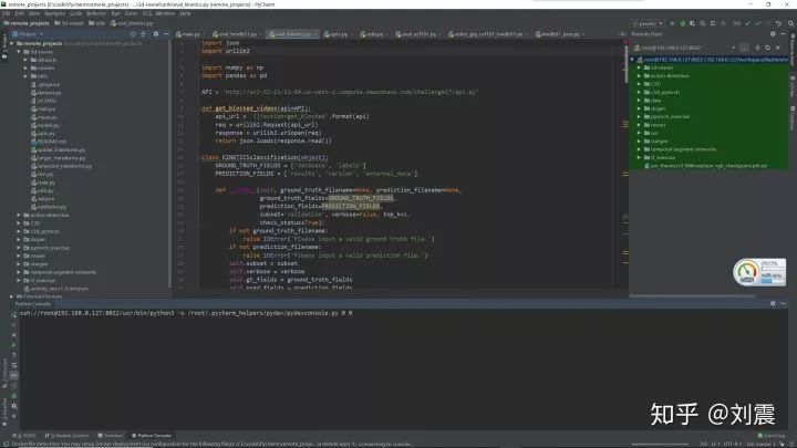 左边是本地的文件,修改之后可以随时右键deployment->upload到远程主机,或者直接在本地调试运行;最右边是远程主机的文件,假如直接在远程修改了文件刷新一下同样可以右键下载到本地,但是我不建议这样做,因为这样很容易带来冲突(毕竟没有很好的版本控制)。目前最好的实践是在局域网的服务器上,时延低,同步速度快。