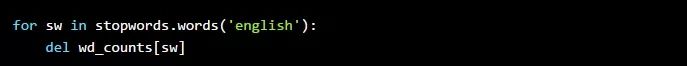 正如我们所见,这是一个很长的列表,没有一个词可以确切告诉我们一个文章的意思。我们使用这个列表来删除Counter中的stopword。