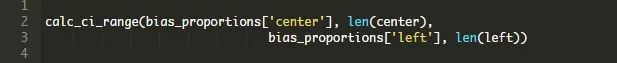 查看“左”相对于“右”出版物的比例差异,可以看到,我们的置信区间在1.8%到2.1%之间。这是一个相当窄的范围,并且相对于总体比例差异范围来说,也远远地远离零。拒绝零假设是显而易见的。同样,center对left的范围是1.3%到2.1%: