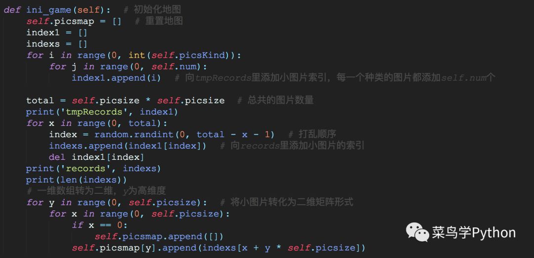 其中有一点应用的很是巧妙,就是利用索引来作为判断是否是一类图片的标志(后面有代码示例的),接下来就是进行图片的消除,如下图所示。