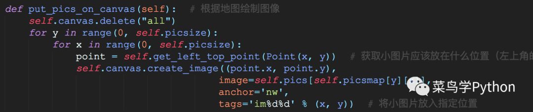 这里是将我们存放到self.pics里面的图片,通过函数self. get_left_top_point函数来获得其对应的坐标,并按照此坐标将图片放置到画布的相应位置。