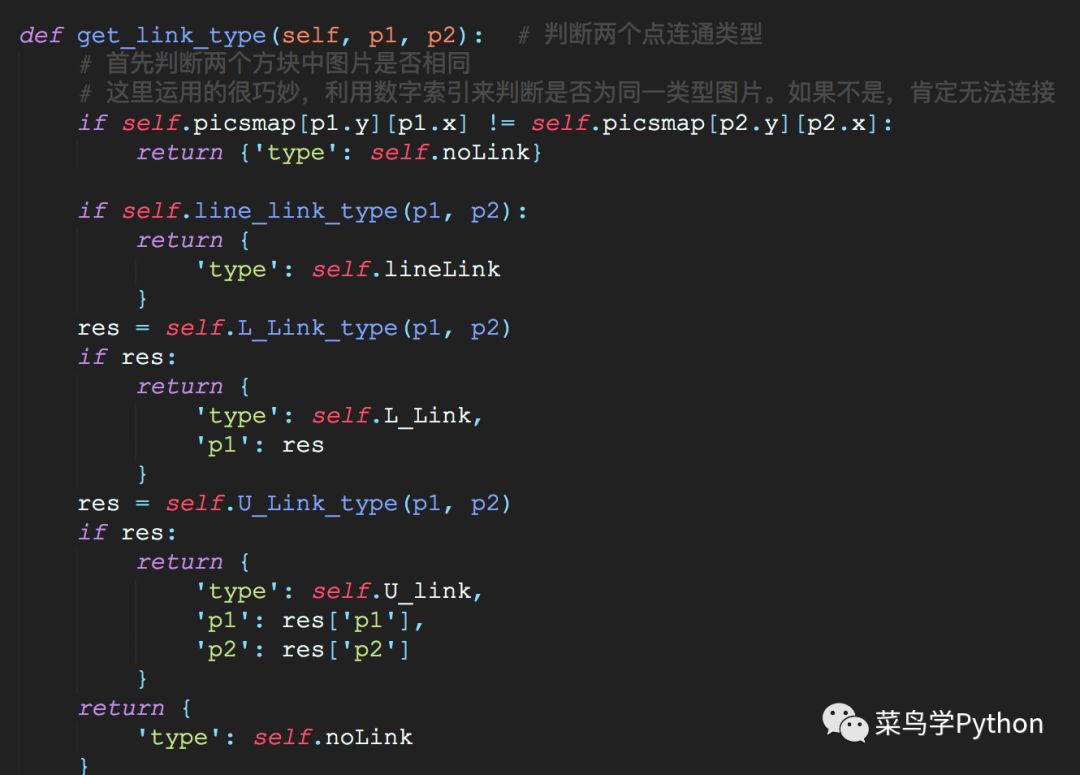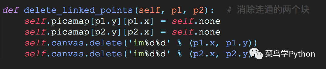 上面的3中连接方法(直连,L型连接和U型连接)。当我们判断二者可以连接后,利用tkinter的画布中的delete函数,便可以将图片删掉。部分程序如下所示: