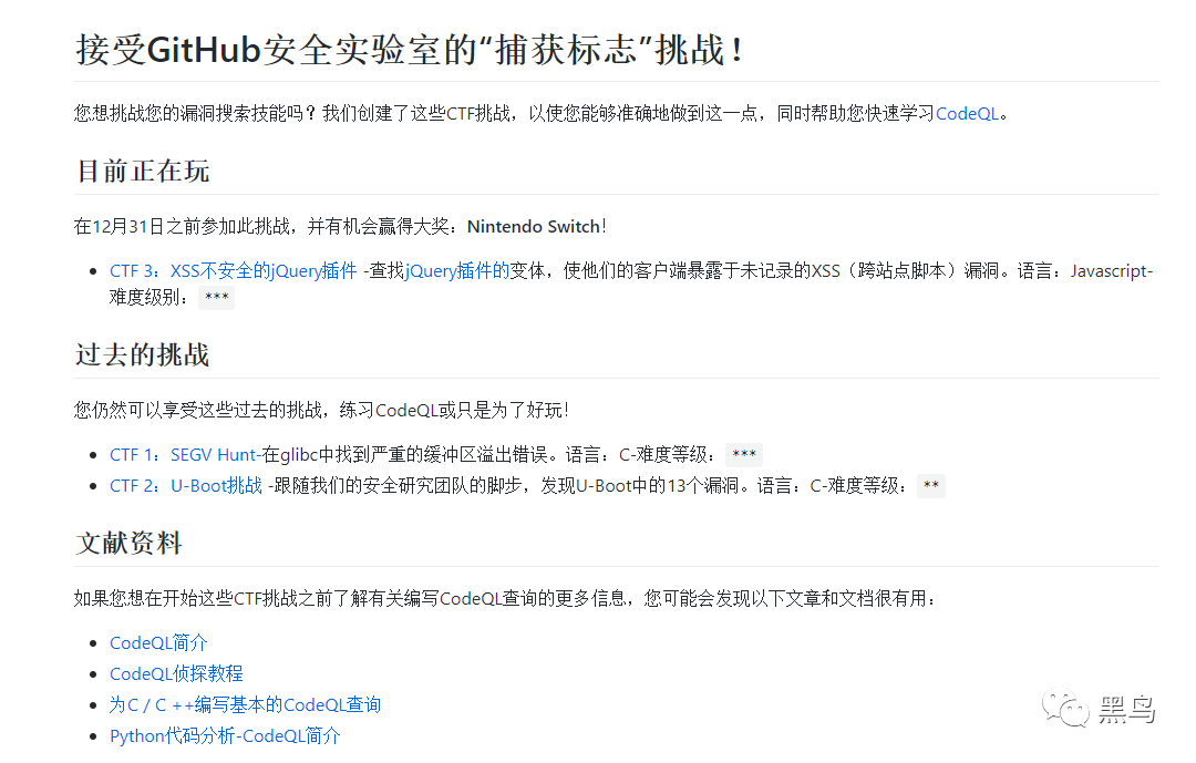 更人性化的是其还开设了专门针对codeql的CTF比赛,专门用来挖掘代码漏洞,可见其为推广工具,花费的功夫很大,并且很贴近安全研究员的学习和使用思路。