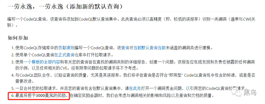 除了发现漏洞有钱之外,编写CodeQL查询,如果写的够好,也可以拿钱,最高可以拿3000美元。