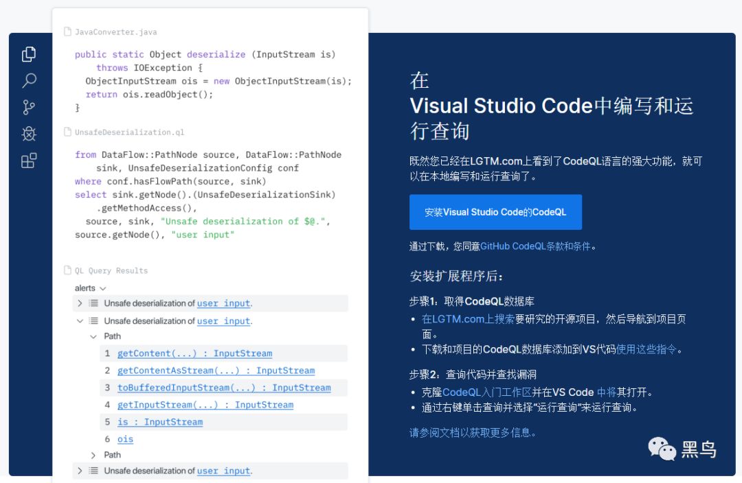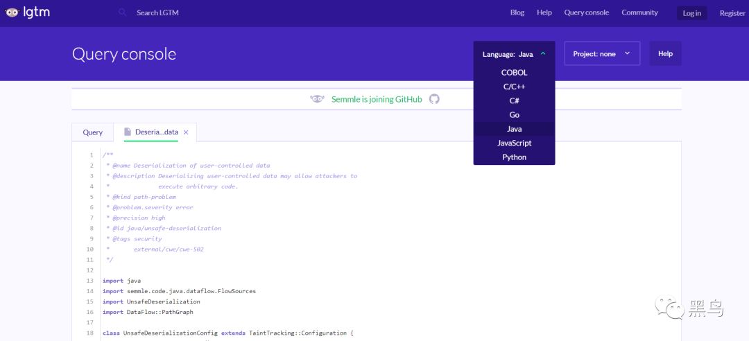 并且还可以在lgtm平台上直接编写代码分析语句,可以说是很人性化了。