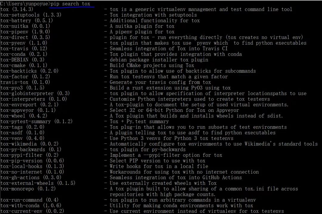 使用pip search tox