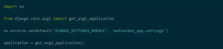 在你的Django应用程序的websocket_app目录看一下,你应该会看到一个名为asgi.py的文件。它的内容看起来将是这样的: