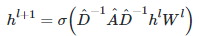 , 加上激活函数σ,做一次非线性变换得到聚合邻接顶点特征的矩阵