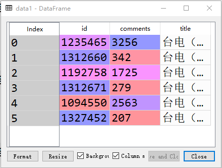 执行后,在变量浏览窗口中就可以看到刚导入的data1、data2、data3三个变量了,双击打开data1变量,就可以得到下面这张表。