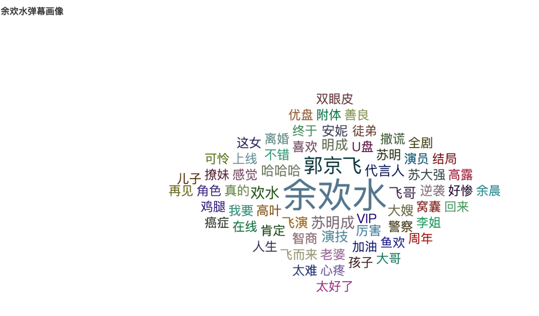 我们再根据主要人物的弹幕,整理出各个人物的画像,首先是余欢水,大家提到最多的就是演员郭京飞的演技,吊打一众小鲜肉,妥妥的用实力说话。