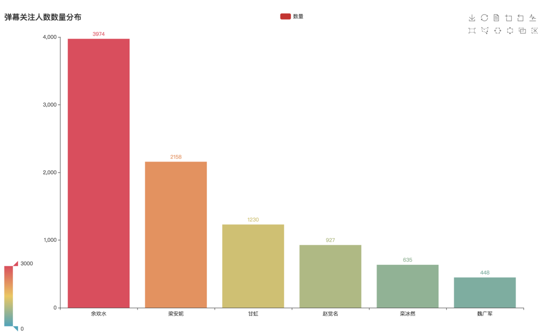 根据分析我们可以看到,讨论最多的当然是我们的男主了,有3974条弹幕都是关于余欢水的。