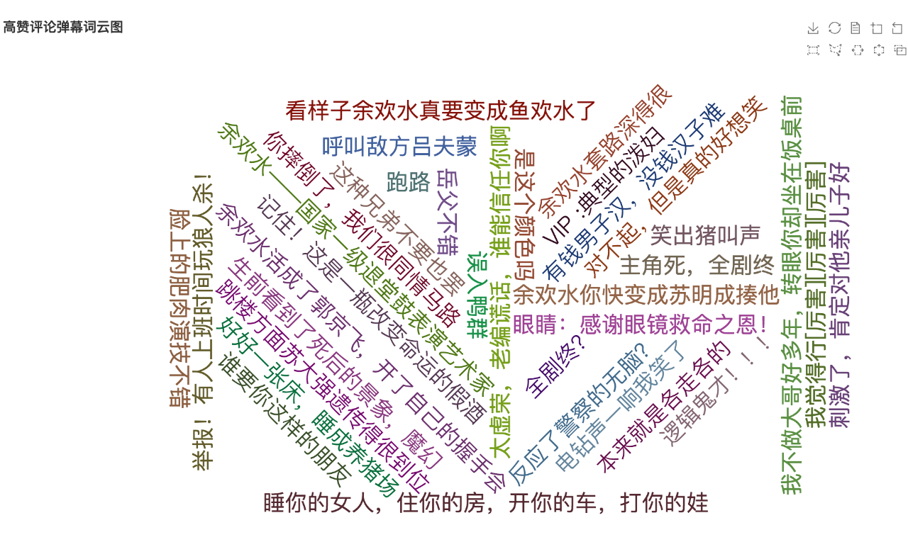 获取到的数据如下所示,共计爬取了 150252 条弹幕(每集平均12521条,每30s的间隔爬取),来看看弹幕下的余欢水。