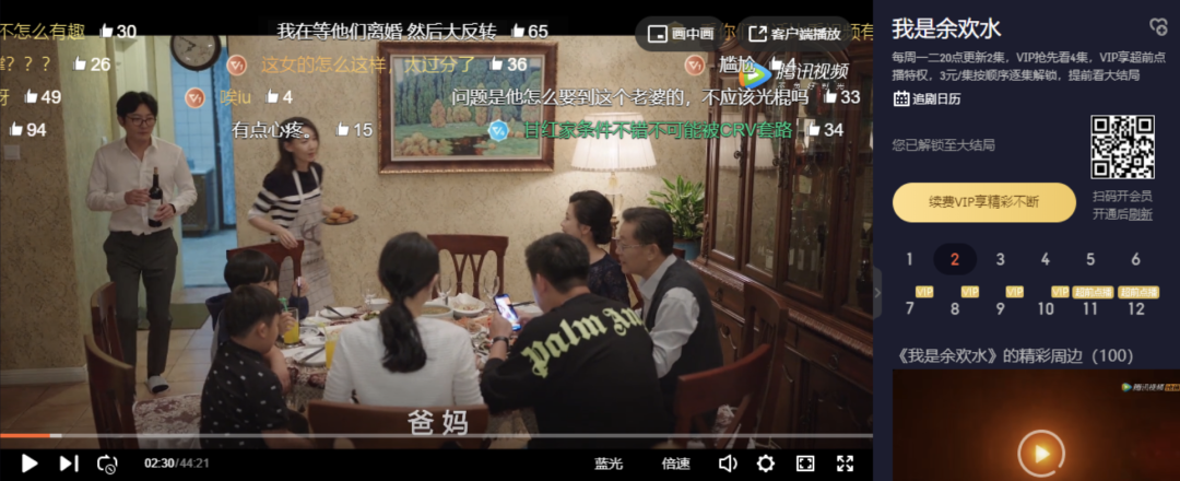 打开腾讯视频《我是余欢水》视频随便选取一集,观察我们需要抓取的弹幕,可以明显看出来弹幕不是在视频上的而是浮动在视频上面,而且弹幕在视频播放之后才滚动加载,所以我们大概能得出弹幕是JS异步加载的。