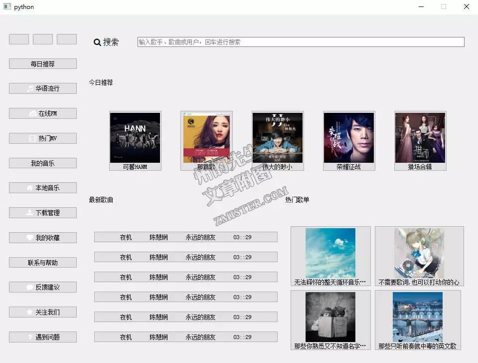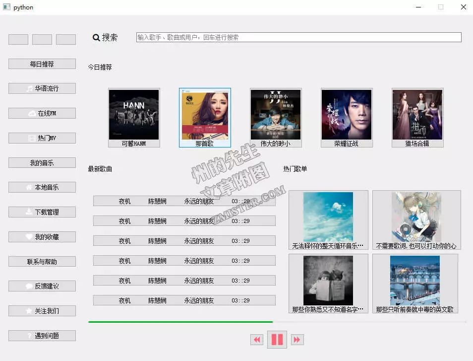 因为推荐模块和歌单模块中使用的都是QToolButton()部件,所以其样式也类似: