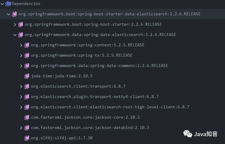 此图是引入的最新版本的依赖,我们可以看到它所使用的es-high-client也为6.8.7,而es7.x版本都已经更新很久了,这里许多新特性都无法使用,所以版本滞后是他最大的问题。而且它的底层也是highclient,我们操作highclient可以更灵活。我呆过的两个公司均未采用此客户端。