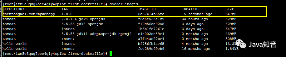 # 然后执行docker images 进行查看会发现有我们刚才构建的镜像