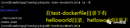 答疑1:我们ls下可以看到Dockerfile里的helloworld应用就在这里