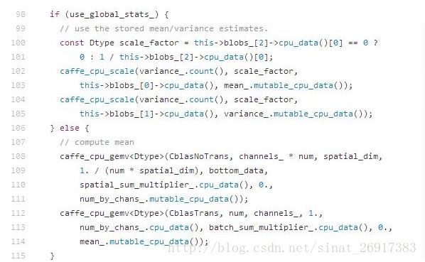 但是如果直接拿这个Proto用于训练(基于随机初始化),则会导致模型不收敛,原因在于在Caffe的batch_norm_layer.cpp实现中,use_global_stats==true时会强制使用模型中存储的BatchNorm层均值与方差参数,而非基于当前batch内计算均值和方差。