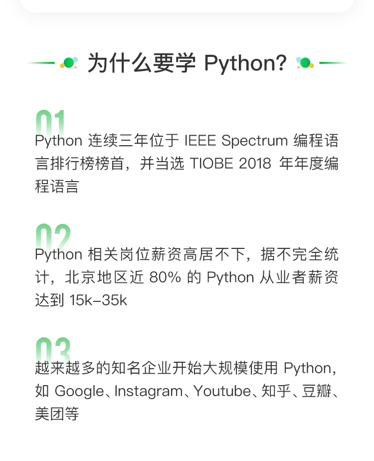 作为一个语法简洁、有着丰富的第三方库的编程语言,Python 上手极为简单,短时间内就可以让你编写出能够解决实际问题的小程序,甚至去面试初级 Python 工程师的职位。