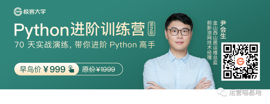 1. 原价 ¥1999,训练营早鸟促销中,现在仅需 ¥999 ,每天仅需 2.5 元,扫描下方二维码,即可报名👇