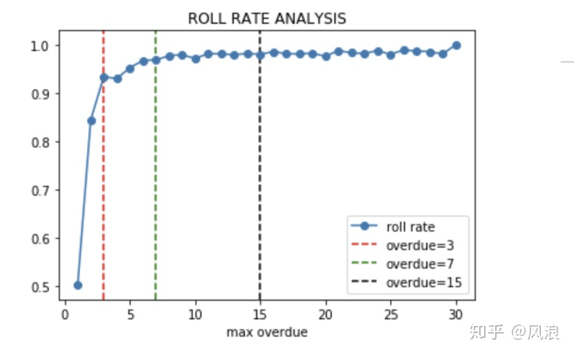 所以我们只要定义表现期长度、逾期天数,例如前三期逾期15+为坏用户;前三期未发生逾期的为好用户。那这两个这么定义呢?发生过逾期就是坏用户吗?逾期可能是多方面的,可能只是忘还了,从“利润最大化”的角度,这部分人其实是好人,因为适当逾期其实可以增加公司的营收,接下来引入两个工具:账龄分析和滚动率分析。