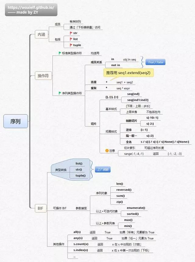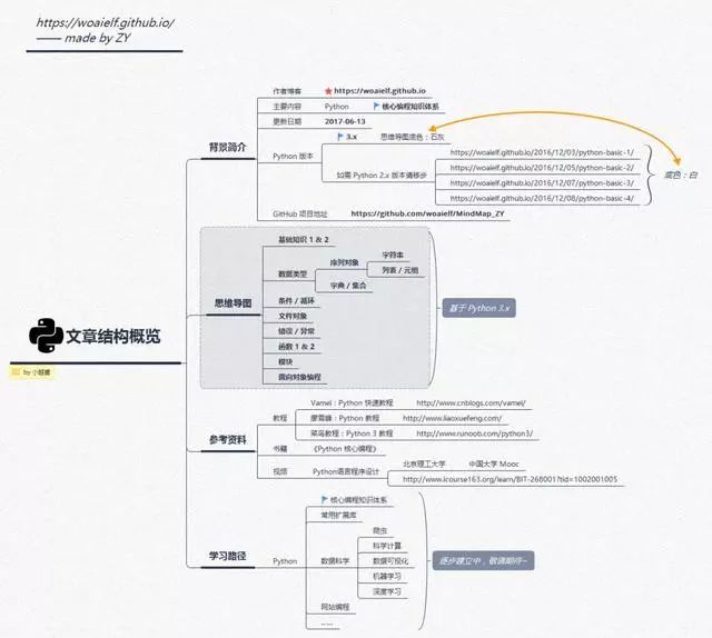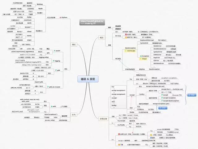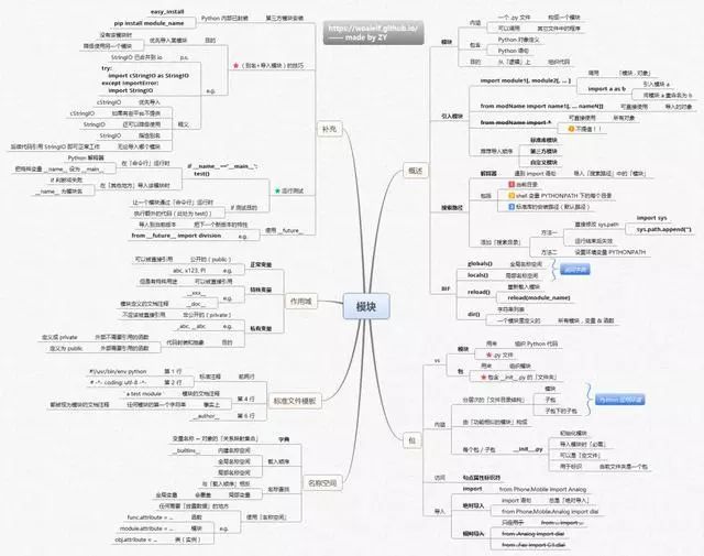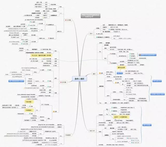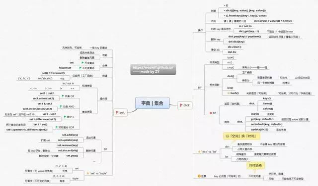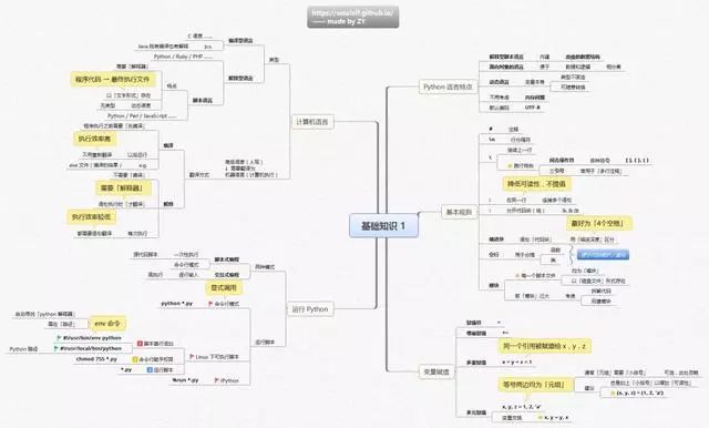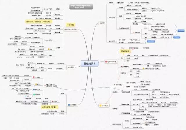 本文主要涵盖了 Python 编程的核心知识,按顺序依次展示了基础知识,数据类型(数字,字符串,列表,元组,字典,集合),条件&循环,文件对象,错误&异常,函数,模块一系列思维导图。