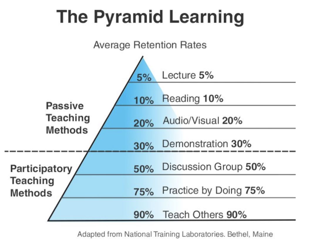 人的学习行为可以分为主动与被动学习,并且有个非常著名的「学习金字塔」理论,美国缅因州国家训练实验室还专门做了实验,并发布的「学习金子塔」的报告。