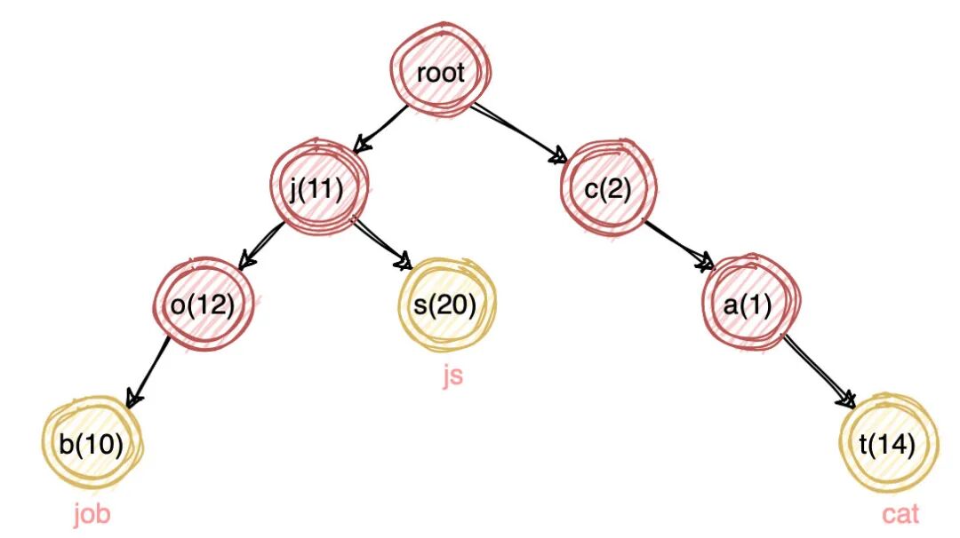 这个 Term Index 我们可以使用这样的 Trie树 也就是我们常说的字典树 来存放。