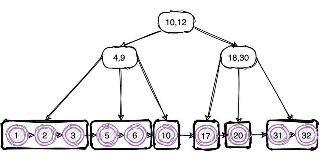 这样所有叶子节点的数据都是有序存放的,便能很好的支持区间查询。