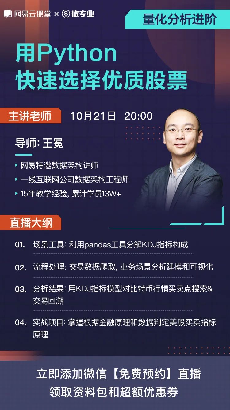 我们利用计算机技术,通过建模分析、优化参数等手段,从历史金融数据中挖掘出影响投资的指标,使用程序进行自动交易来获得“超额”的收益,这种投资方法就叫做量化交易。现在,很多量化机构将人工智能和机器学习与量化策略相结合。国内的一些顶尖私募,比如:九坤、幻方、朱雀等都在使用AI量化策略,从各大公司的招聘公告上也可以看出这点。如果想要进一步了解数据分析和量化交易,可以了解下网易云课堂免费推出的《3天数据分析师实战营》,资深数据分析大牛带你在项目案例中实战学习,带你少走弯路,真正实现从0到1。▼
