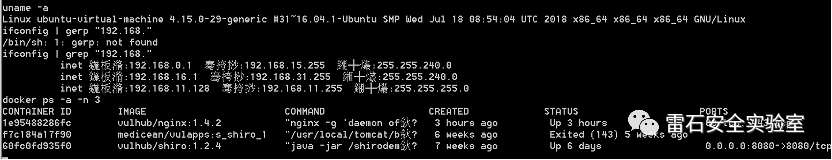 可以看到反弹了shell回来,那么是不是这个宿主机Ubuntu呢?那肯定是,随便执行点命令看看: