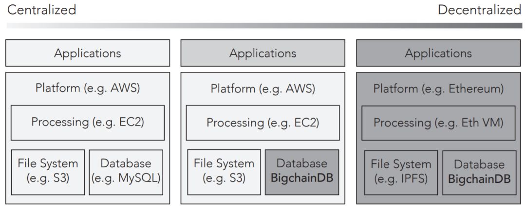 上面这张旧图也强调了一个完全中心化的到一个完全去中心化的转变的解决方案。这可以用来帮助将现存的软件系统更新为更去中心化的系统,关注于更新那些最值得更新的组件就好了。