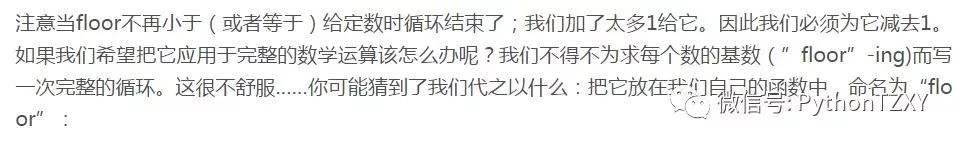 我们构建函数时使用的萃取方法称为过程抽象,许多编程语言把关键字过程同函数一样使用。事实上,这两个概念是不一样的,但是在python中它们都被称为函数(因为它们或多或少以同样的方式定义和使用)。
