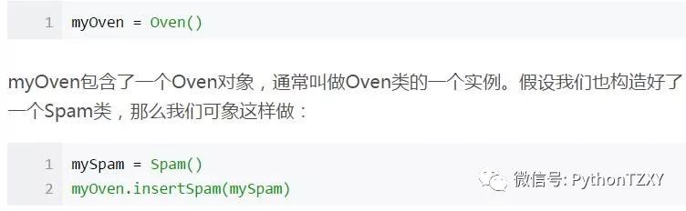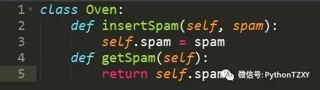 这样,self.spam =spam这一行设置当前Oven对象的spam属性的值为参数spam。注意它们是两个不同的事物,尽管在这个例子中它们都被称为spam。