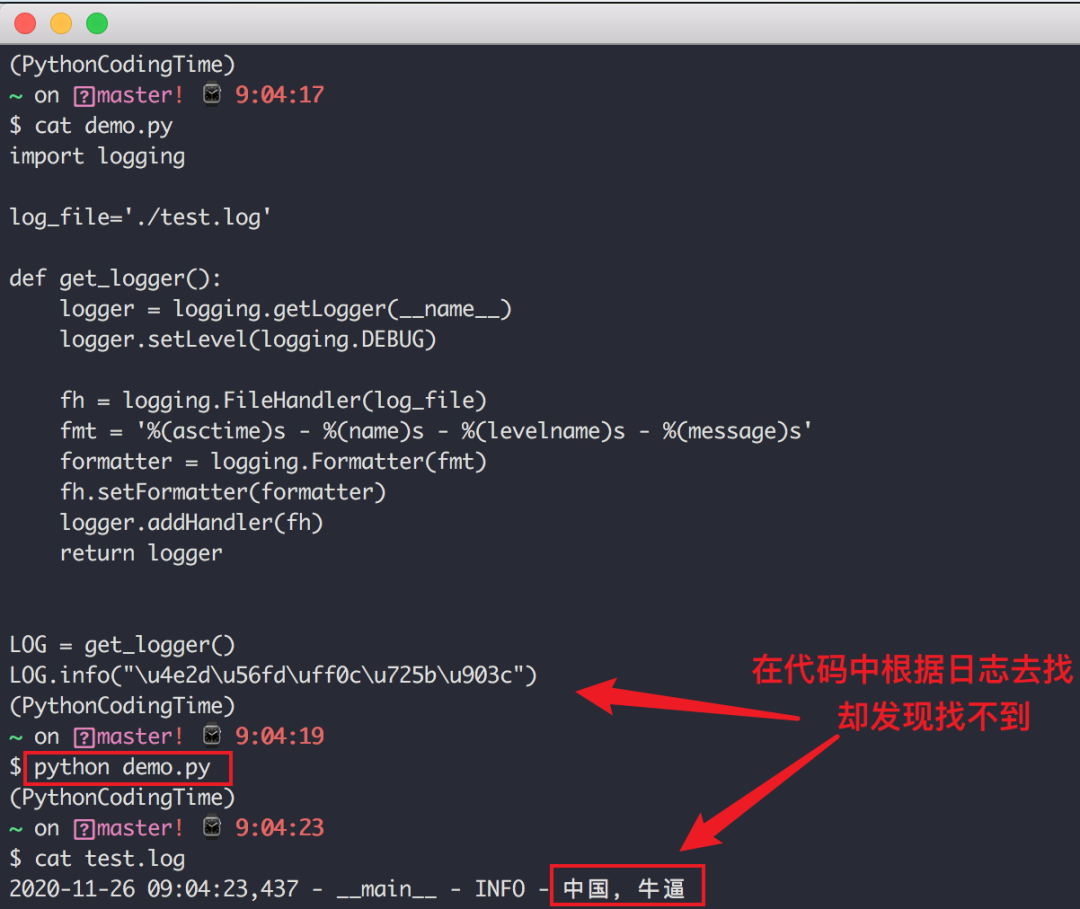 试想一下,假如你的同事,在打印日志时,使用这种 unicode 编码,然后你在定位问题的时候使用这个关键词去搜,却发现什么都搜不到?这就扑街了。