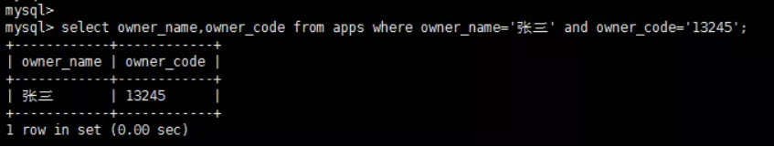 而('43212' and owner_name='李四')是一个逻辑表达式,而这里不难知道owner_name并不是‘李四’。因此,这个逻辑表达式的结果为false,false在MySQL中等价于0!