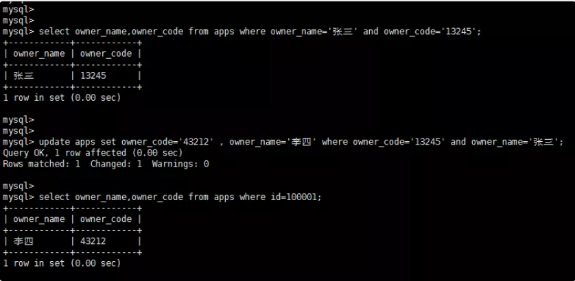 update apps set owner_code=('43212' and owner_name='李四') where owner_code='13245' and owner_name='张三';
