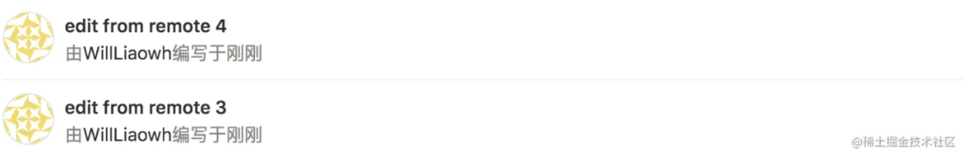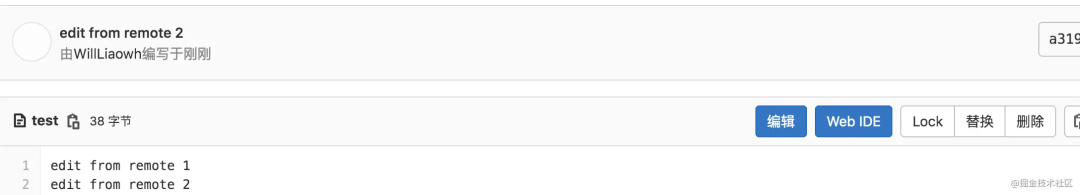 3、在远程仓库中直接修改文件并 commit,模拟其他开发者的 commit。