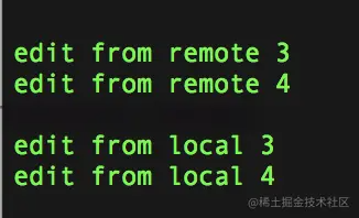 4.如果此时我push本地的提交到远程,就会被拒绝,因为远程和本地已经各自有commit了,我们常规的做法是git pull一下,在本地解决冲突,然后继续push,本质上git pull = git fetch + git merge。
