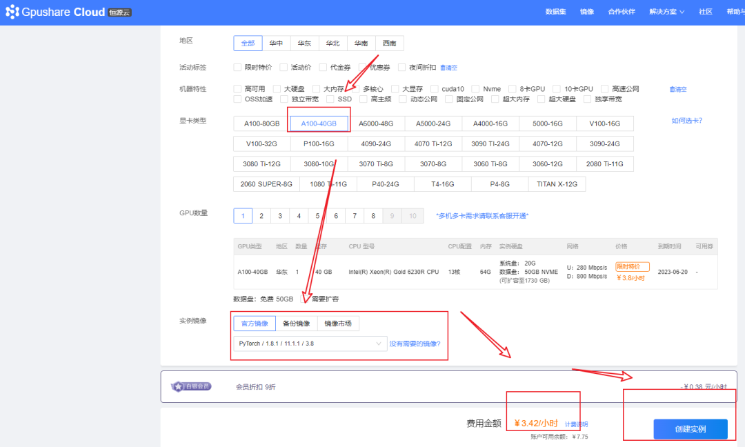 对于线下机器不能满足训练的模型需求,则考虑上云,一些常见的云GPU平台如下: