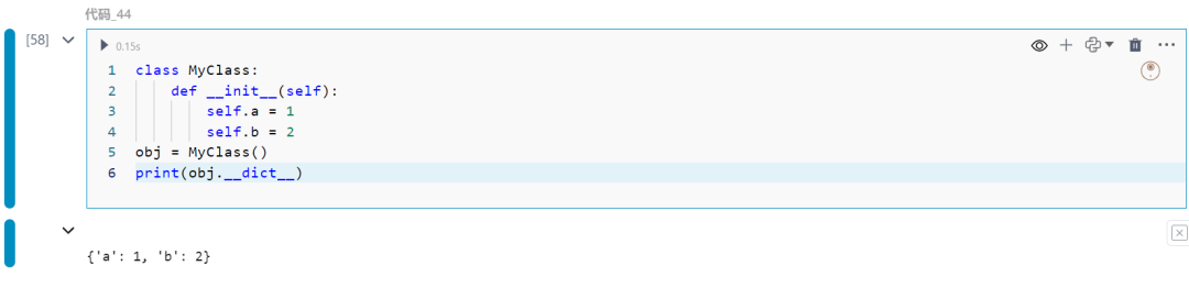 class MyClass: def __init__(self): self.a = 1 self.b = 2obj = MyClass()print(obj.__dict__)