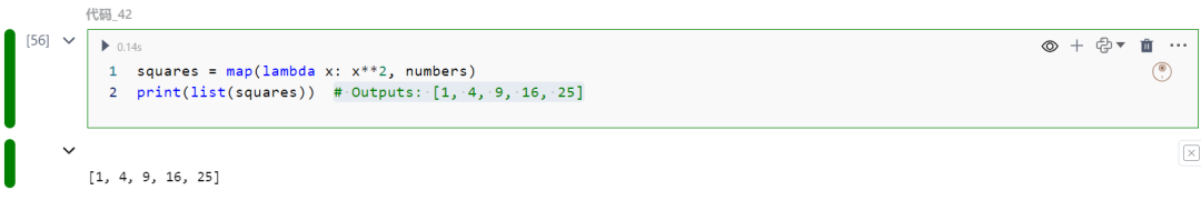 squares = map(lambda x: x**2, numbers)print(list(squares))