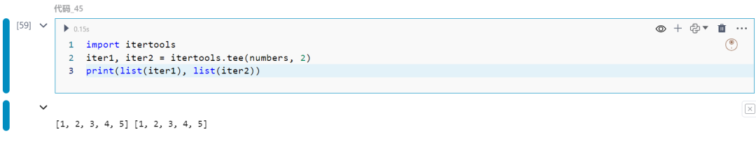 import itertoolsiter1, iter2 = itertools.tee(numbers, 2)print(list(iter1), list(iter2))