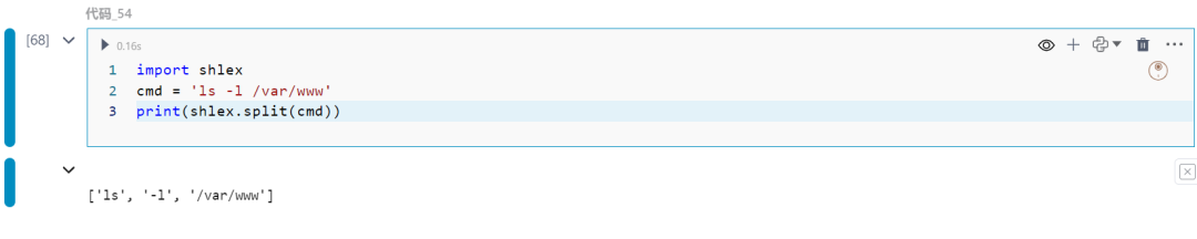 import shlexcmd = 'ls -l /var/www'print(shlex.split(cmd))
