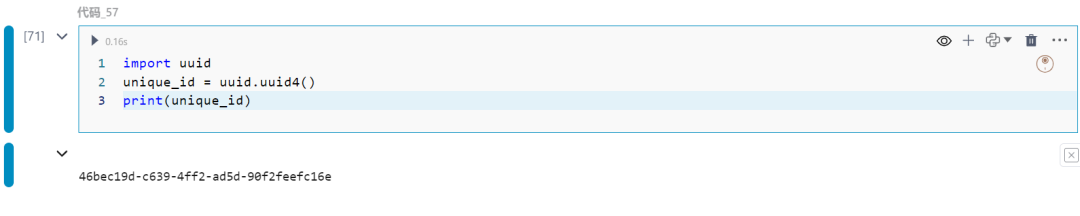 import uuidunique_id = uuid.uuid4()print(unique_id)