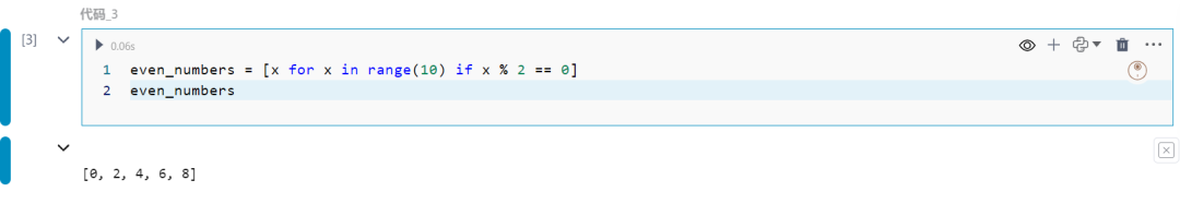 even_numbers = [x for x in range(10) if x % 2 == 0]even_numbers