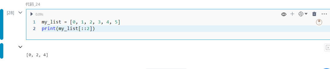 my_list = [0, 1, 2, 3, 4, 5]print(my_list[::2])